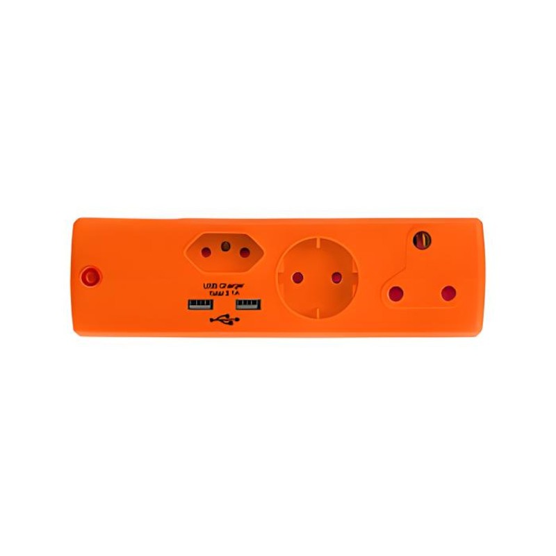 Specification: Euromate – Adaptor 3pin 1x16amp1+Schuko+1×5+2USB Orange