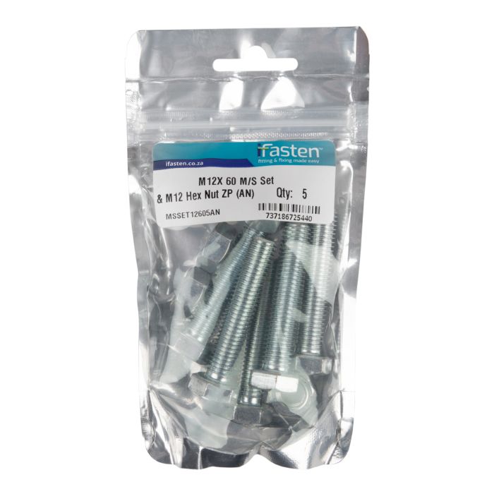 Specification: Ifasten Set Screw Ms And Nut Zp M12X60mm 5 Pp